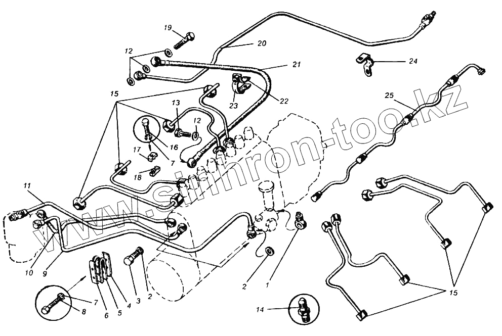 Каталог запасных частей к технике: ПТЗ К-702МВА. Топливные трубопроводы двигателя-238НД