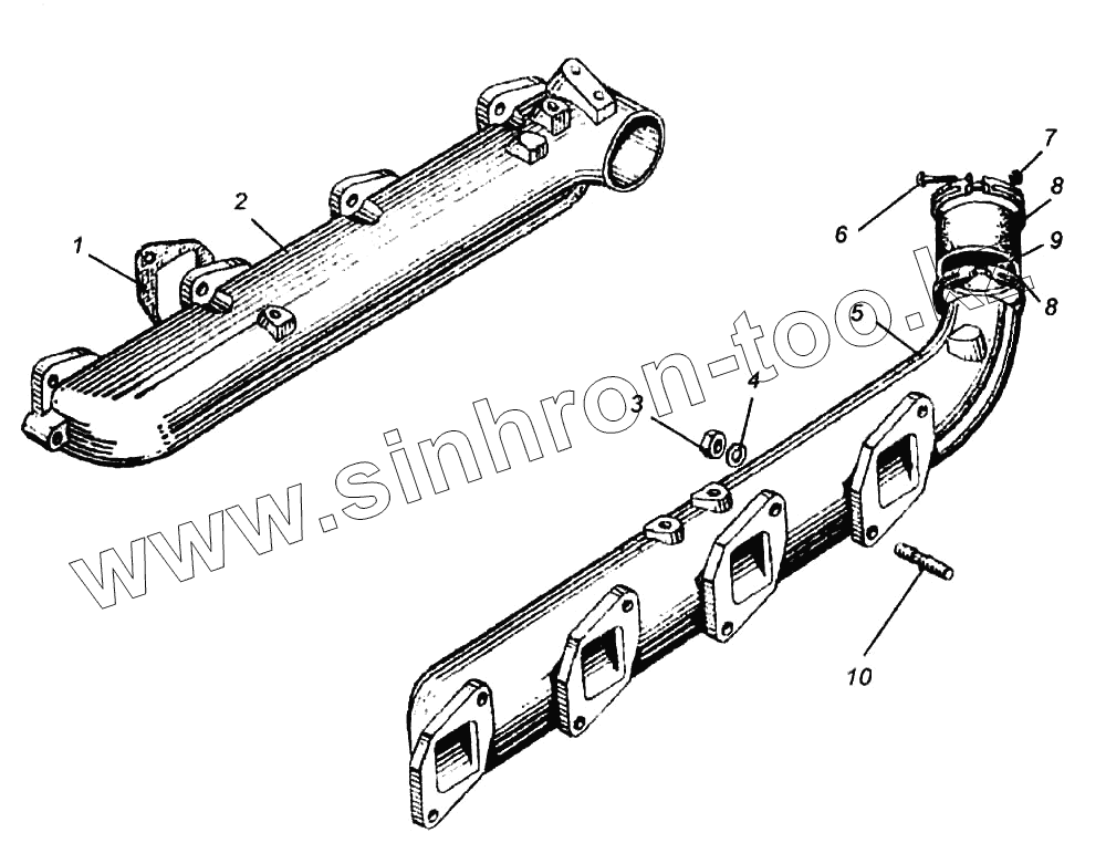 Каталог запасных частей к технике: ПТЗ К-702МВА. Впускной трубопровод двигателя-238НД