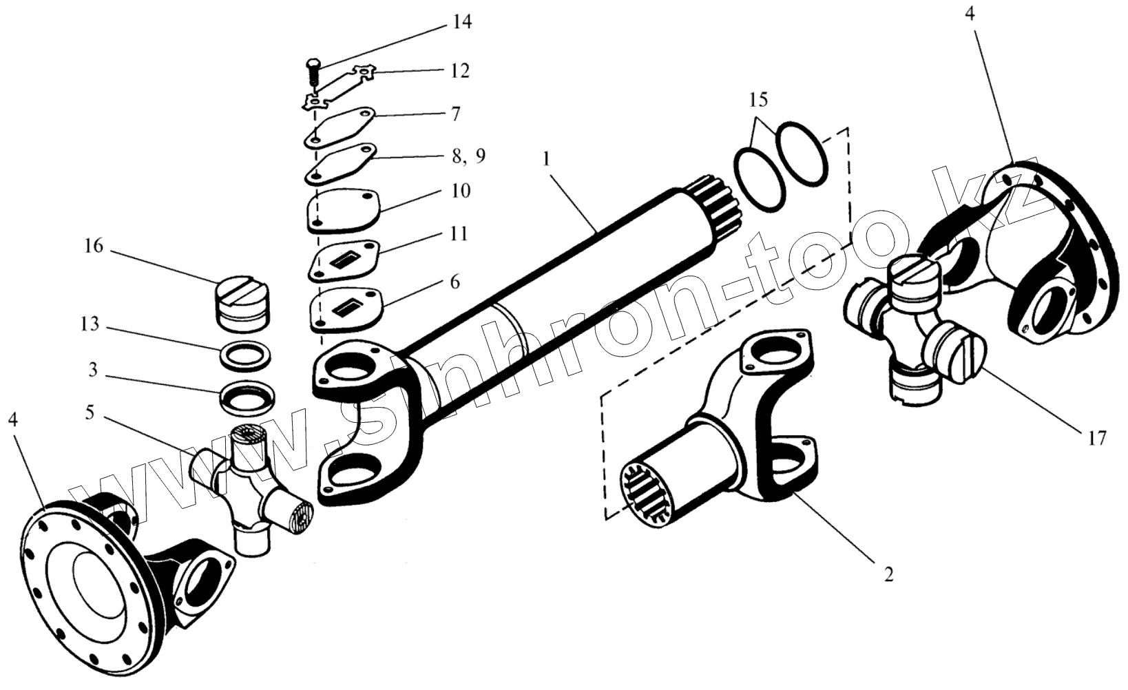 Каталог запасных частей к технике: ПТЗ К-703МА-12 / К-703М-12. Вал карданный переднего моста