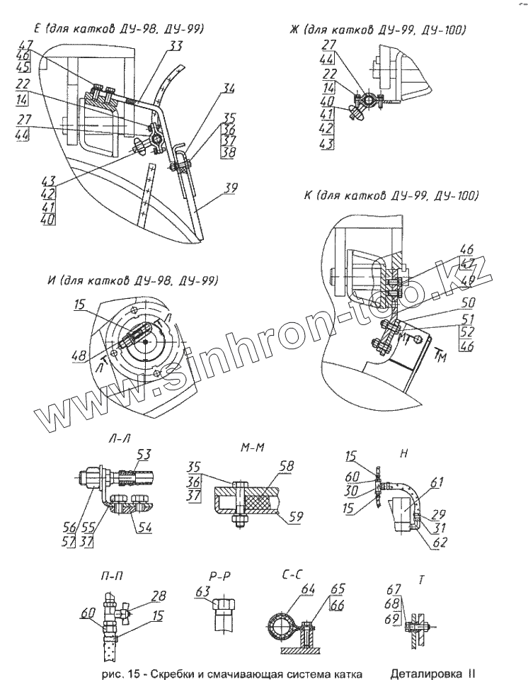 Каталог запасных частей к технике: Раскат ДУ-100. Скребки и смачивающая система катка