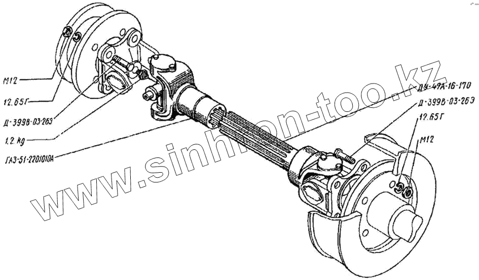 Каталог запасных частей к технике: Раскат ДУ-47Б. Вал карданный ДУ-47А-16-150
