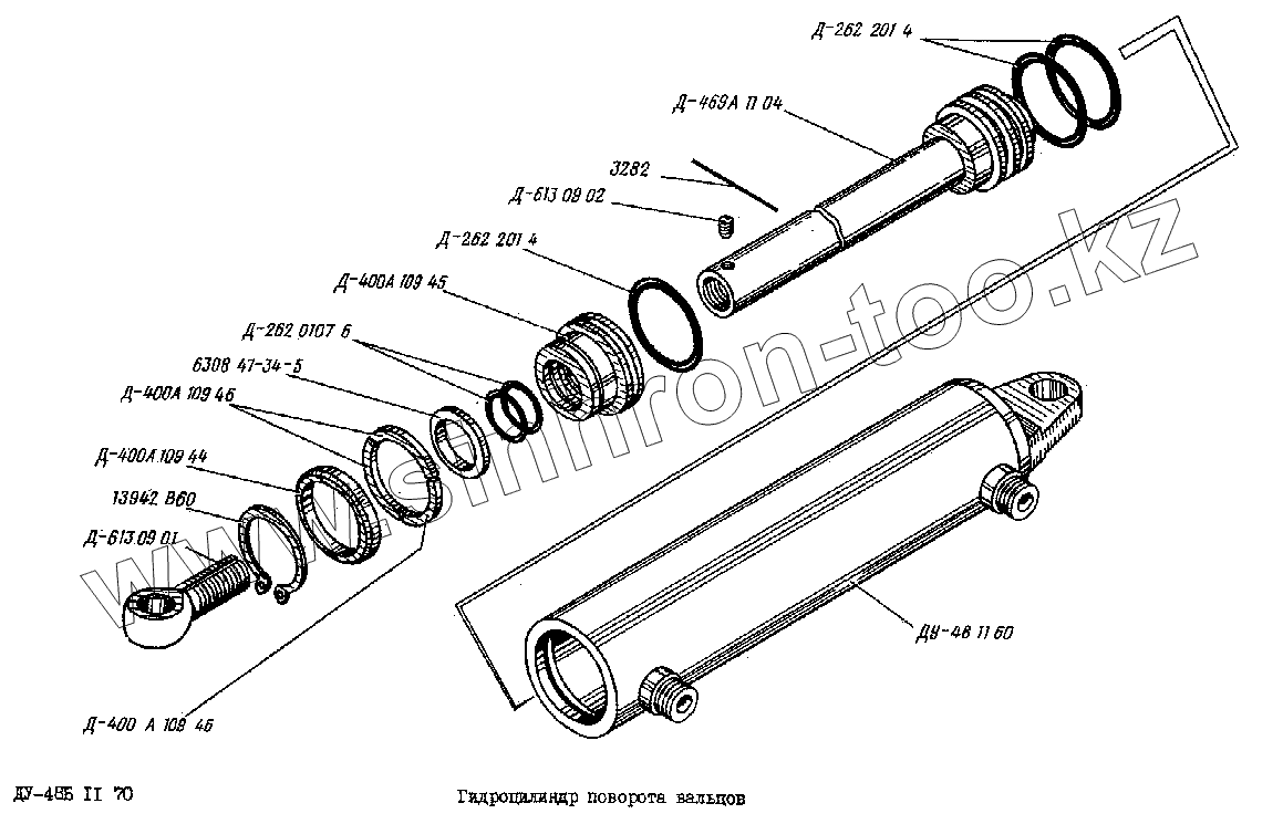 Каталог запасных частей к технике: Раскат ДУ-48Б. Гидроцилиндр поворота вальцов ДУ-48Б 11 70
