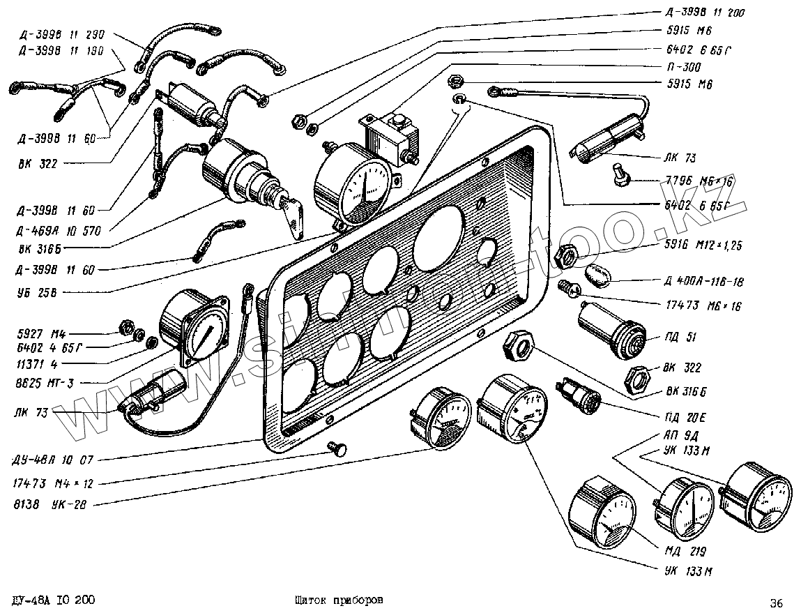 Каталог запасных частей к технике: Раскат ДУ-48Б. Щиток приборов ДУ-48А 10 200