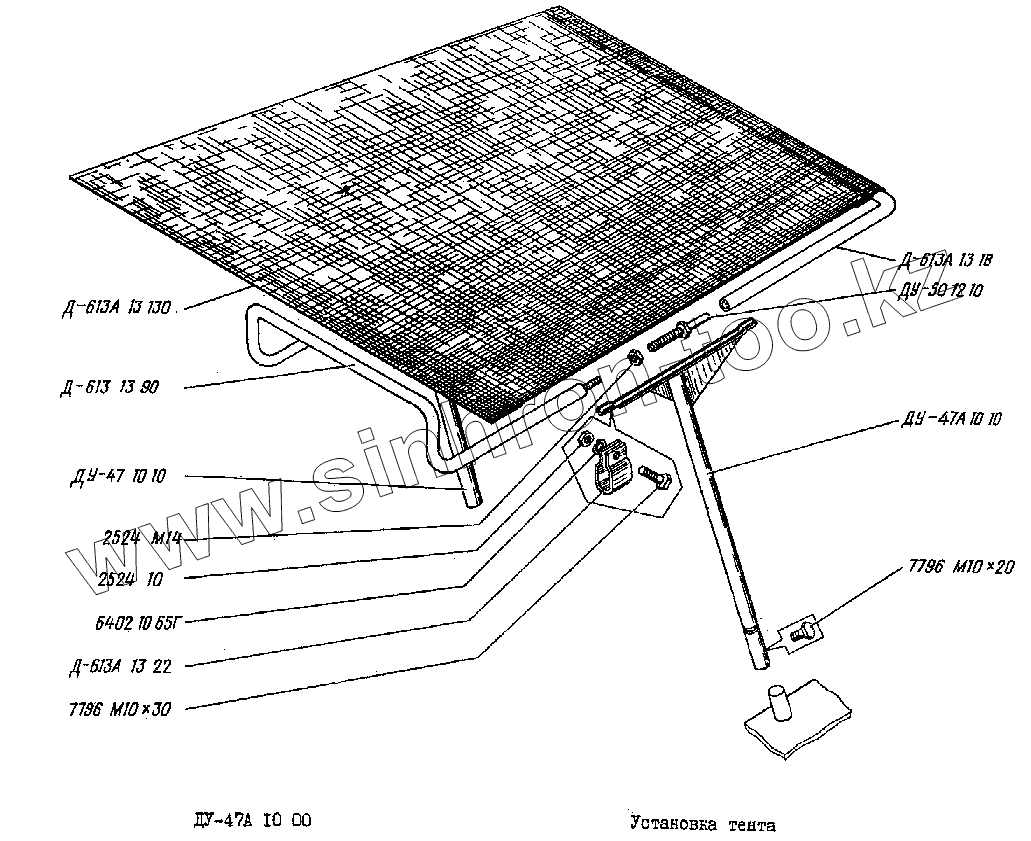 Каталог запасных частей к технике: Раскат ДУ-48Б. Установка тента ДУ-47А 10 00