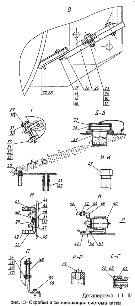 Каталог запасных частей к технике: Раскат ДУ-84. Скребки и смазывающая система катка