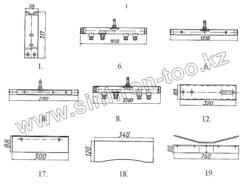 Скребки и смазывающая система катка (деталировка)