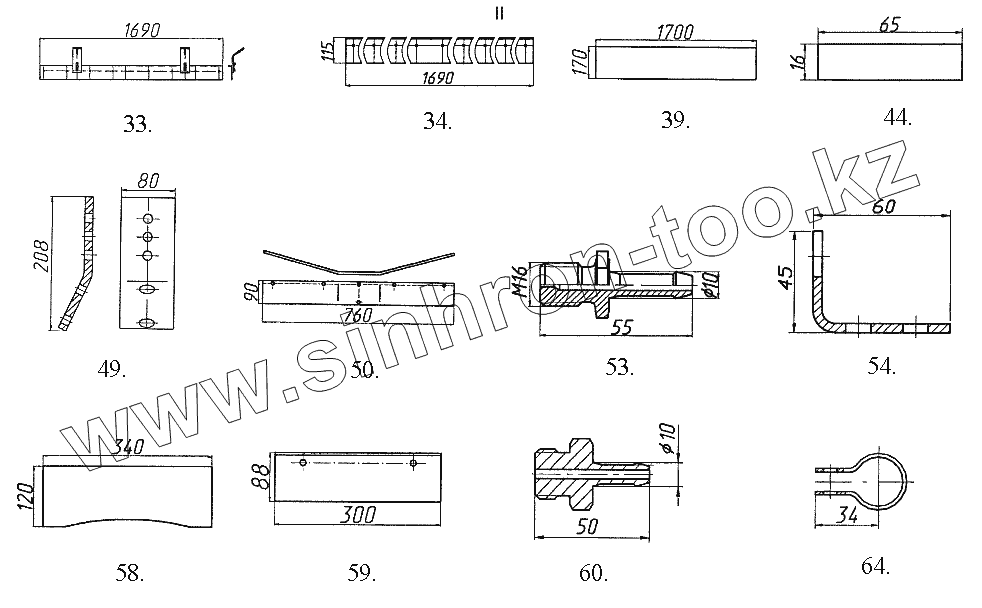 Каталог запасных частей к технике: Раскат ДУ-98. Скребки и смачивающая система катка (деталировка)