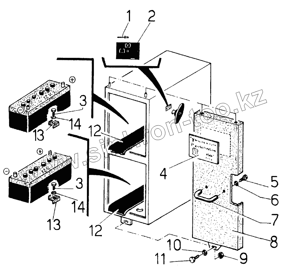 Каталог запасных частей к технике: RM-Terex RT35-1. Battery compartment assembly with batteries