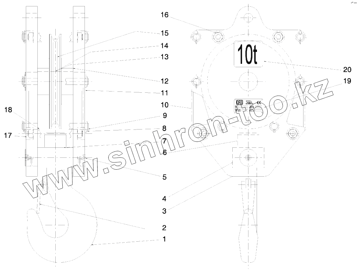 Каталог запасных частей к технике: RM-Terex RT35-1. Block 10T capacity