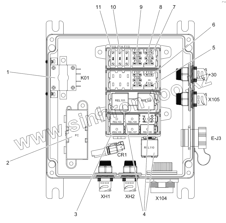 Каталог запасных частей к технике: RM-Terex RT35-1. CARRIER RELAYS BOX