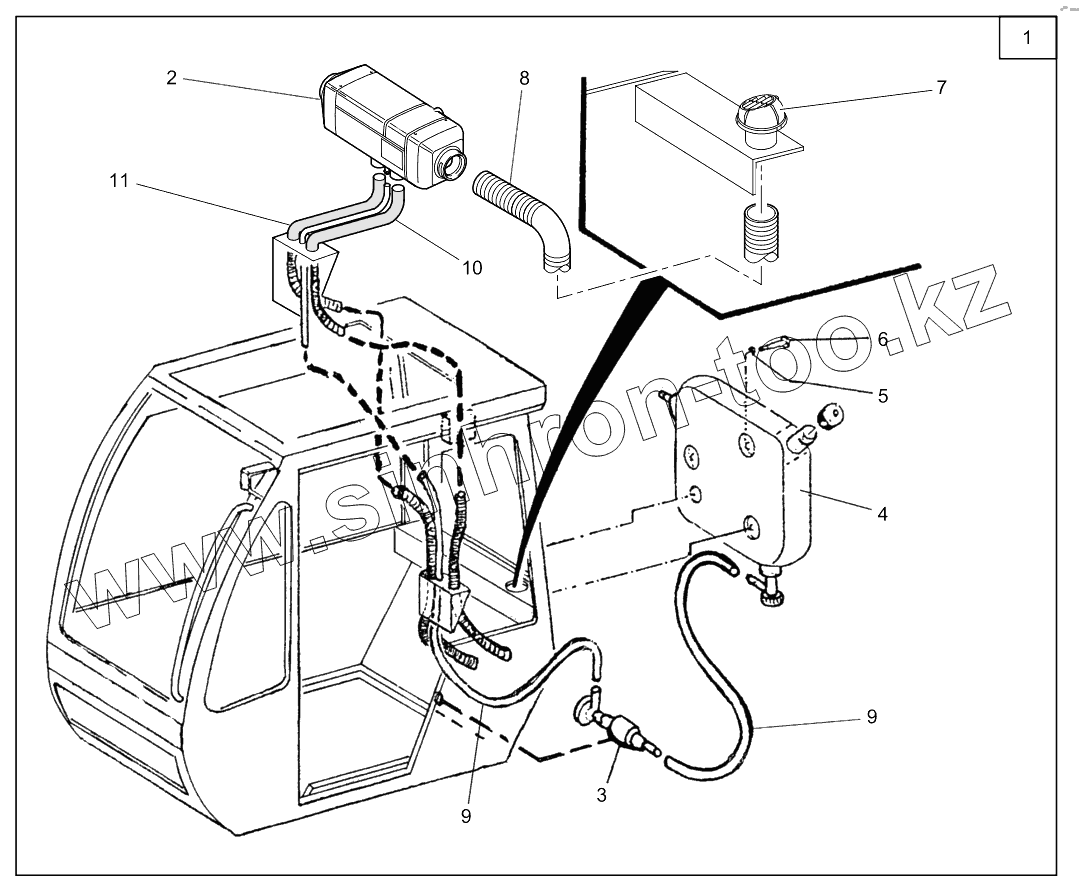 Каталог запасных частей к технике: RM-Terex RT35-1. In-cab heating system