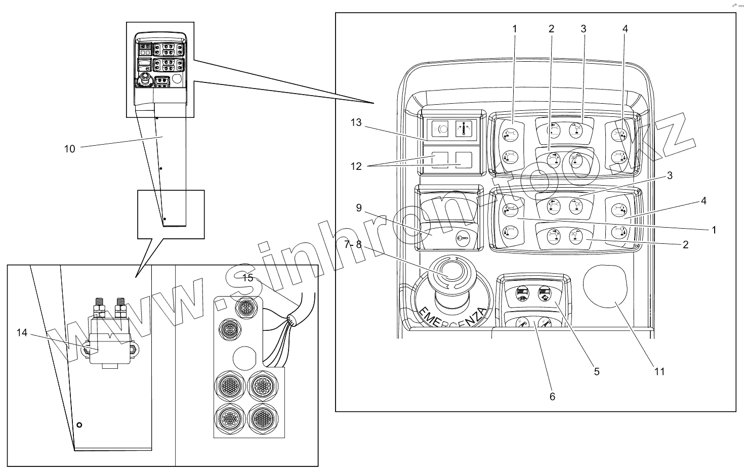 Каталог запасных частей к технике: RM-Terex RT35-1. OUTRIGGERS SIDE DASHBOARD