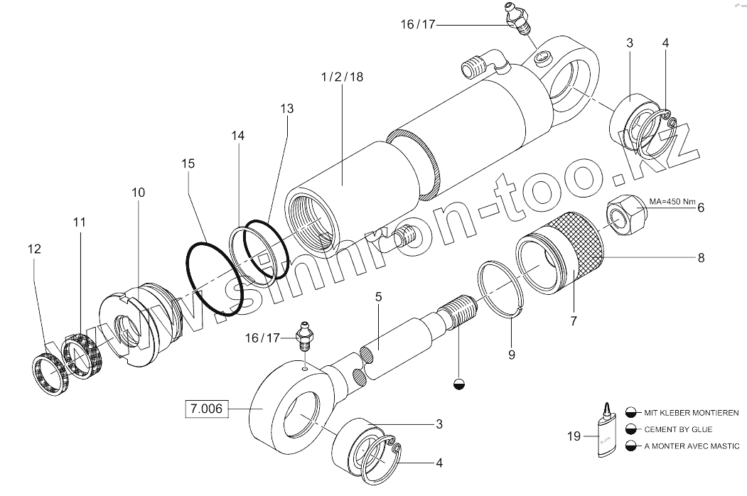 Каталог запасных частей к технике: RM-Terex TC35. Hydraulic Cylinder - Bucket Z 70/35 >Tc00350691