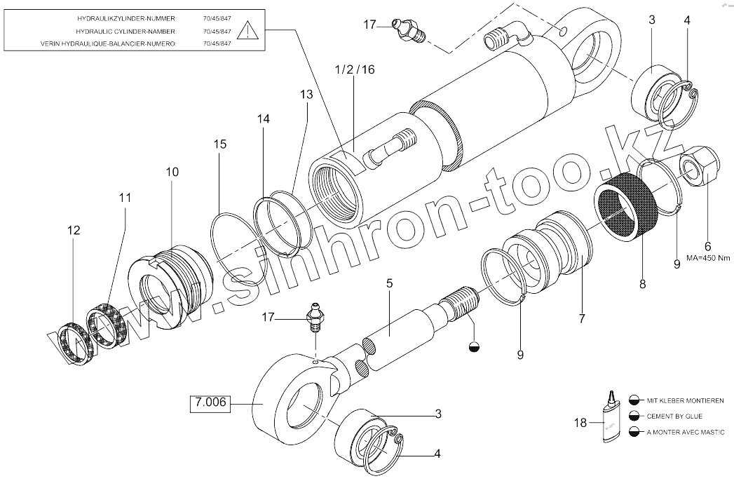 Каталог запасных частей к технике: RM-Terex TC35. Hydraulic Cylinder- Stick Z 70/45
