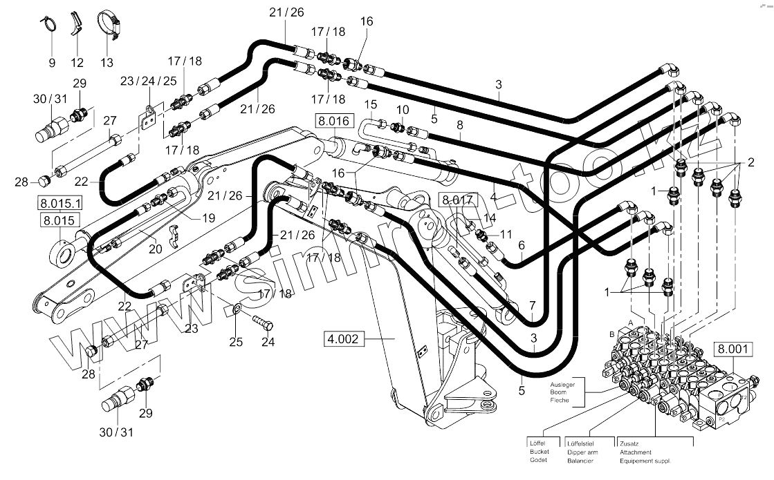Каталог запасных частей к технике: RM-Terex TC35. Hydraulic Installation - Working Equipment