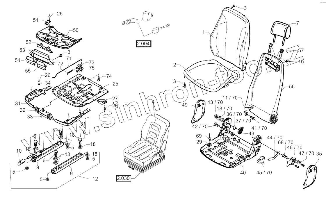 Каталог запасных частей к технике: RM-Terex TC35. Operators Seat Msg85