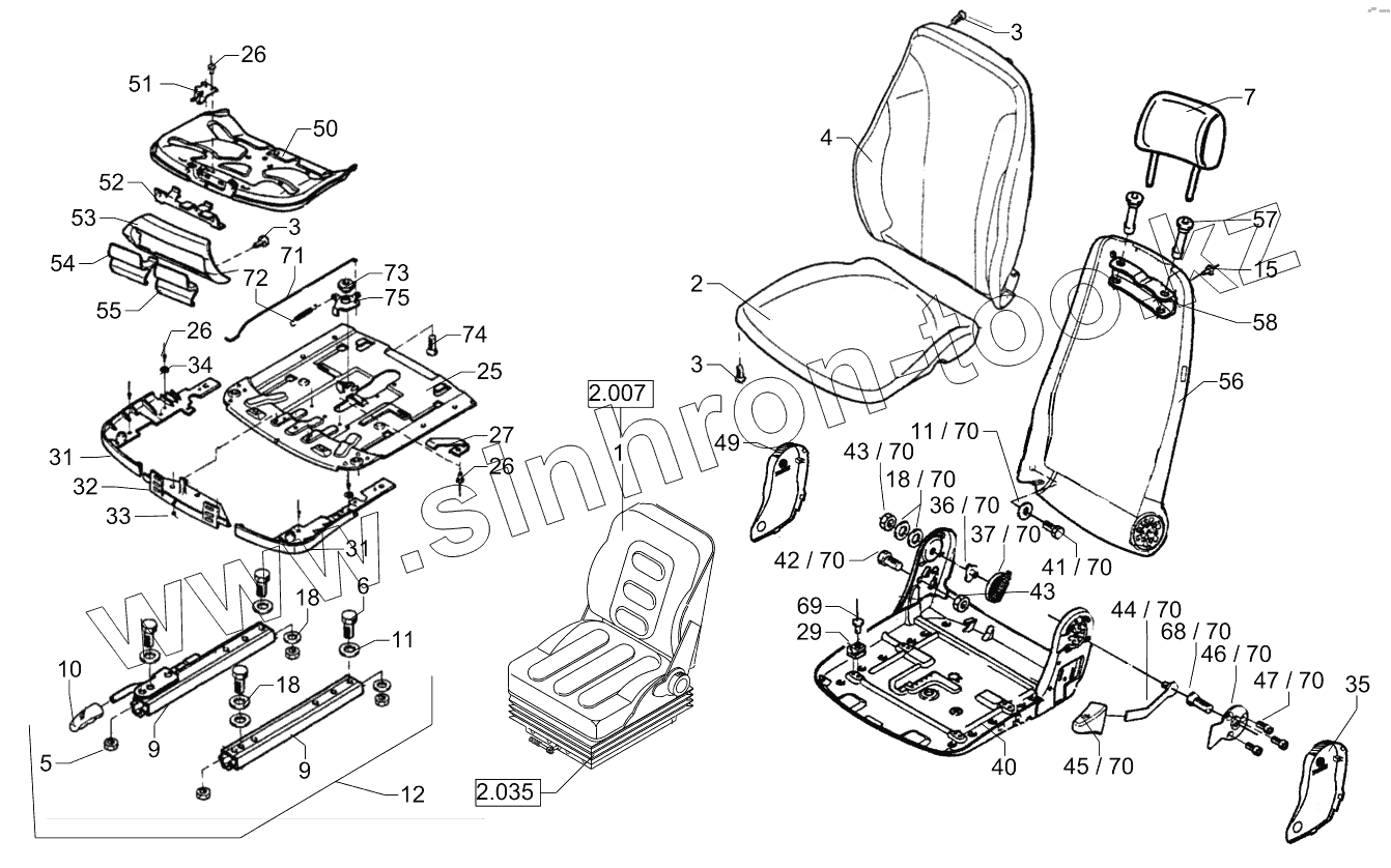 Каталог запасных частей к технике: RM-Terex TC-29. Operator's Seat - Msg85