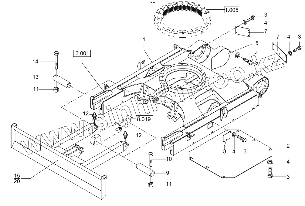 Каталог запасных частей к технике: RM-Terex TC-48. Undercarriage 1850 Mm, Front Dozer Blade