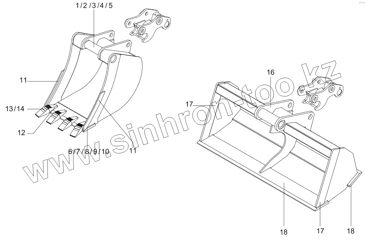 Каталог запасных частей к технике: RM-Terex TC-50. Bucket, Ditch Cleaning Bucket, Quick-Attach
