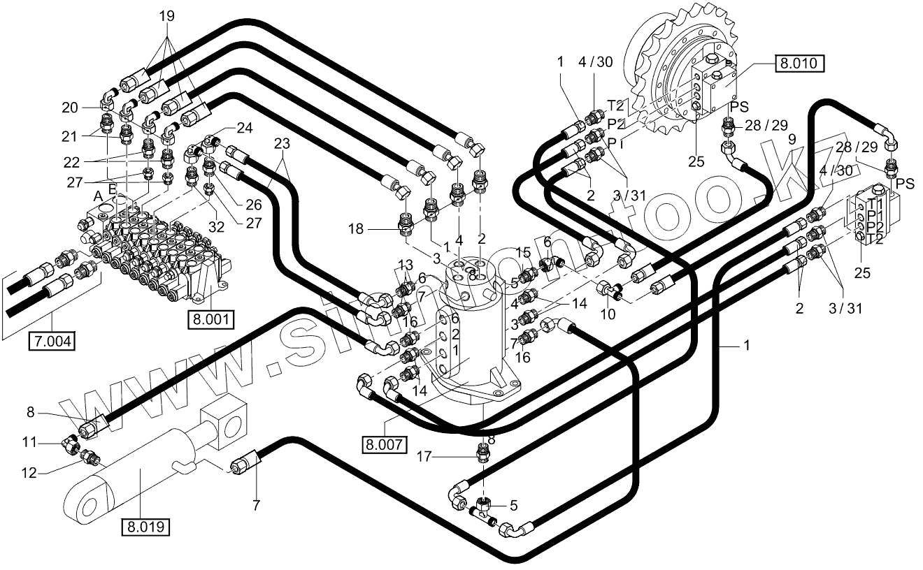 Каталог запасных частей к технике: RM-Terex TC-50. Hydraulic Installation - Drive