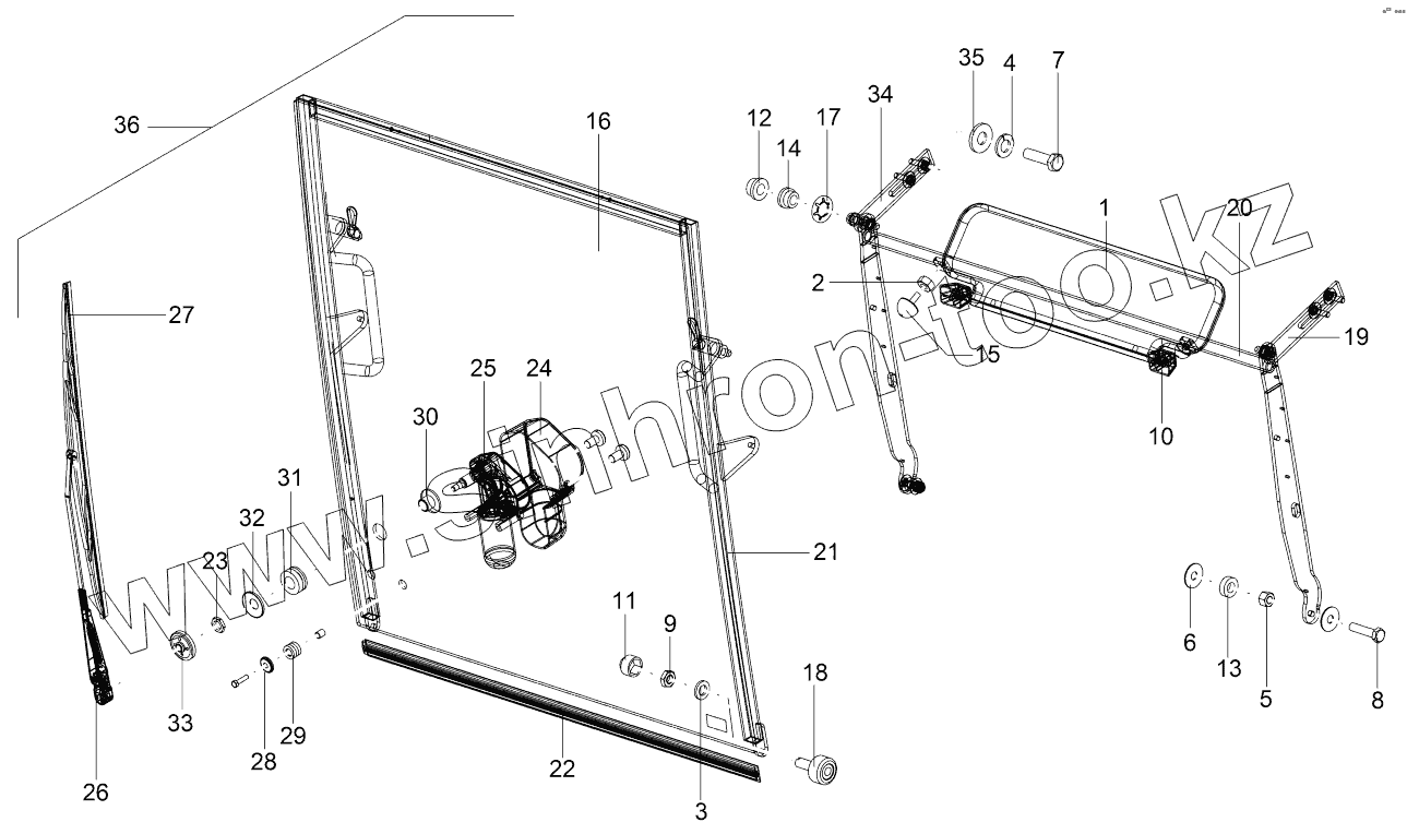 Каталог запасных частей к технике: RM-Terex TC-50. Operator's Cab - Roller Pane
