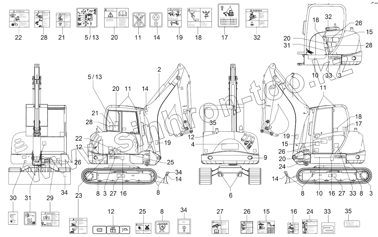 Каталог запасных частей к технике: RM-Terex TC-50. Stickers - Usa >Tc00500701