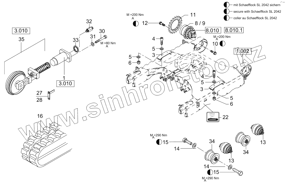 Каталог запасных частей к технике: RM-Terex TC-50. Undercarriage, Travel Drive, Rubber Crawler Chain
