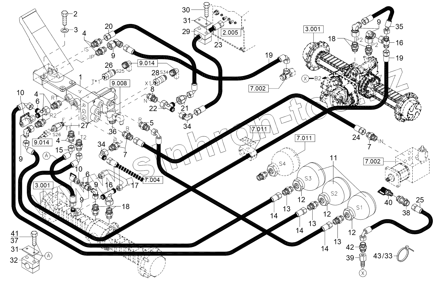 Каталог запасных частей к технике: RM-Terex TL-260. HYDRAULIC INSTALLATION - SERVICE BRAKE