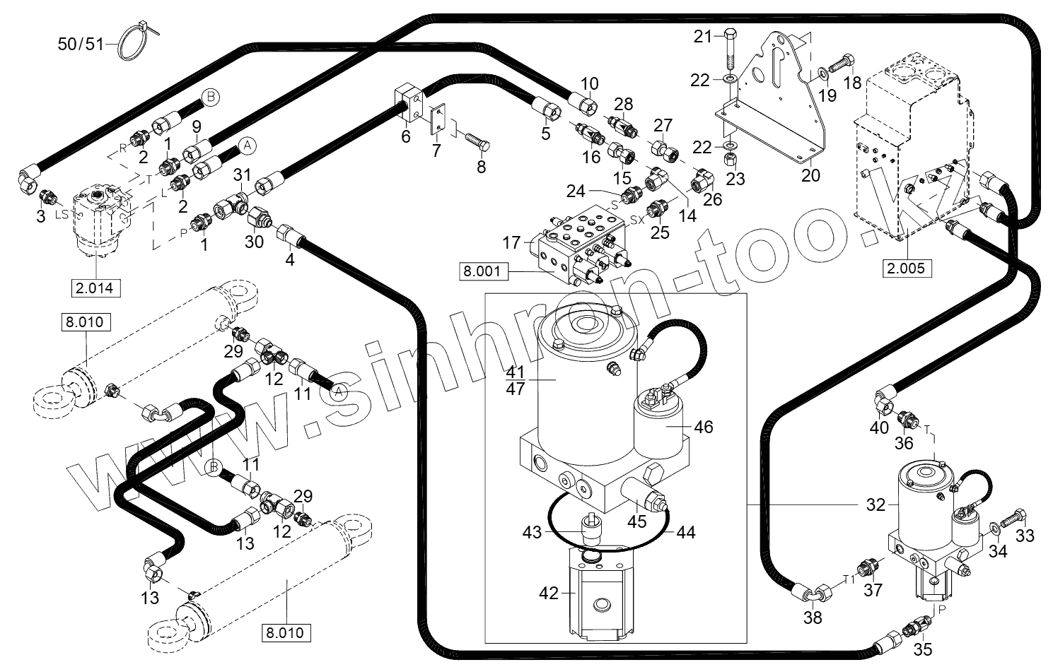 Каталог запасных частей к технике: RM-Terex TL-260. HYDRAULIC INSTALLATION - STEERING