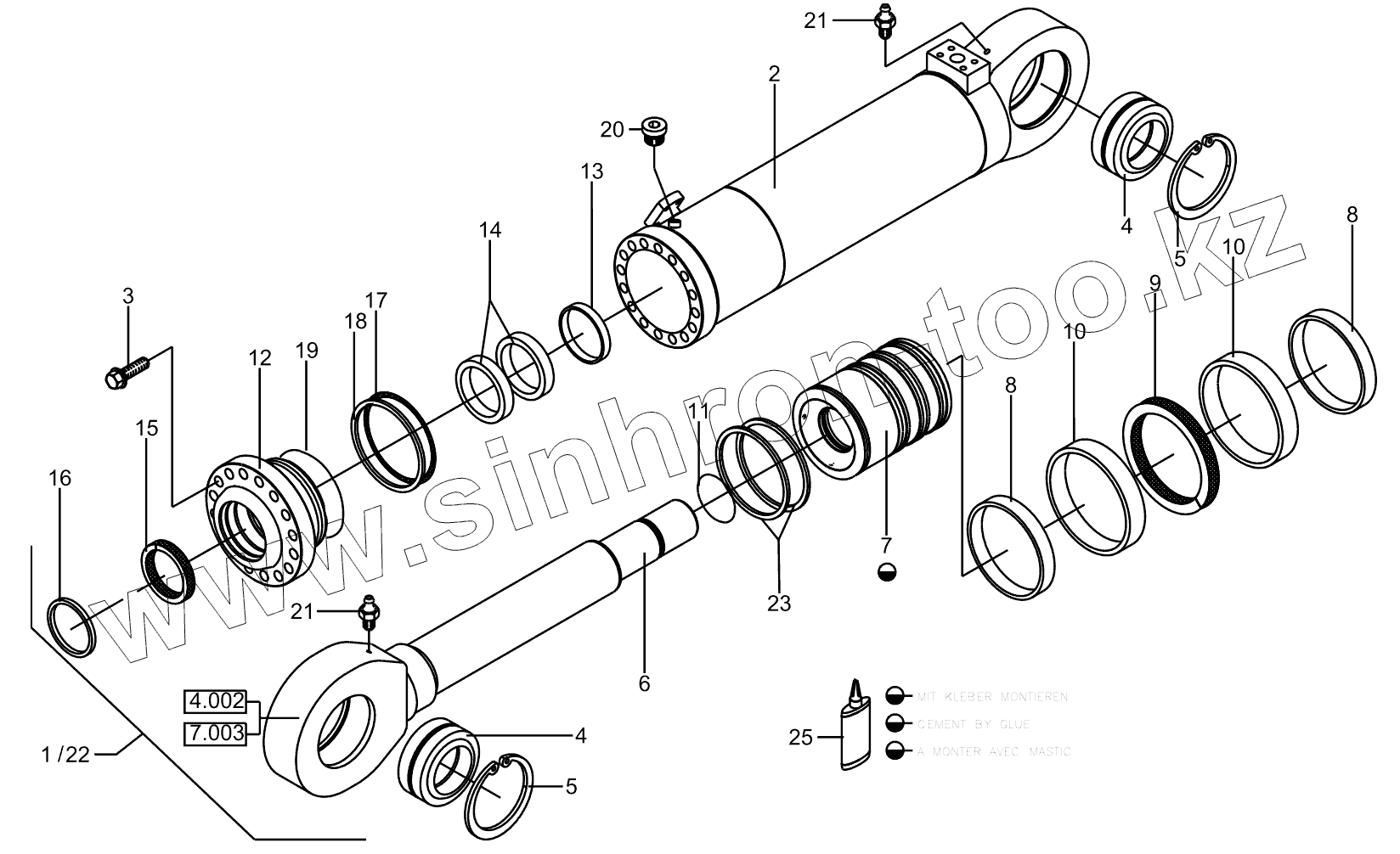 Каталог запасных частей к технике: RM-Terex TL-310. Hydraulic Cylinder - Dumping Tl03100> Z160/100