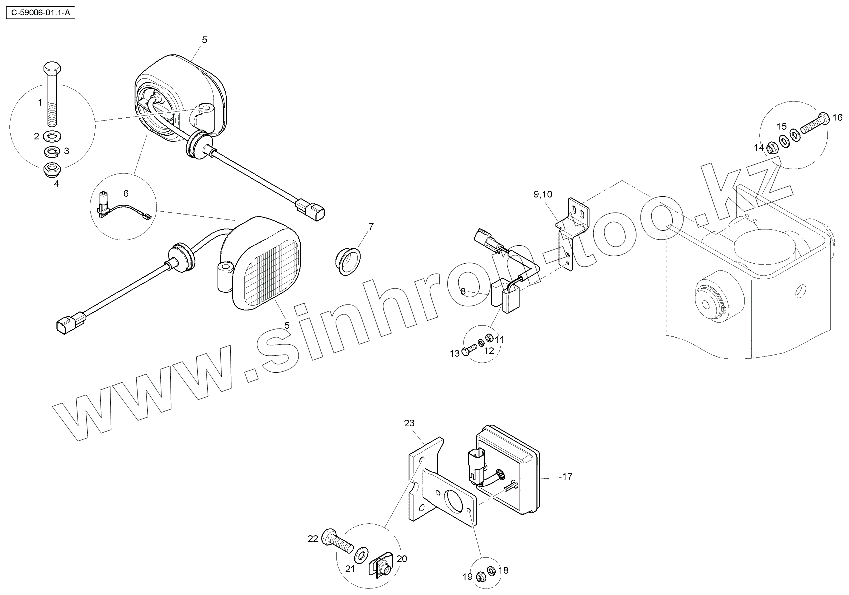 Каталог запасных частей к технике: RM-Terex TLB840SM, TLB840PM. 4067 59006 Rear Lights - Ss - 4