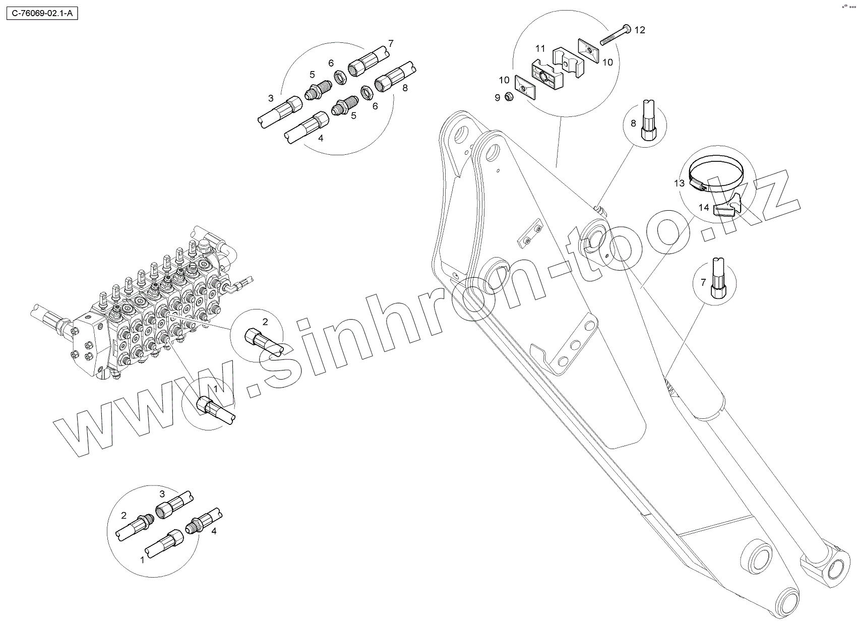 Каталог запасных частей к технике: RM-Terex TLB840SM, TLB840PM. 4067 76069 Bucket Cylinder Hoses