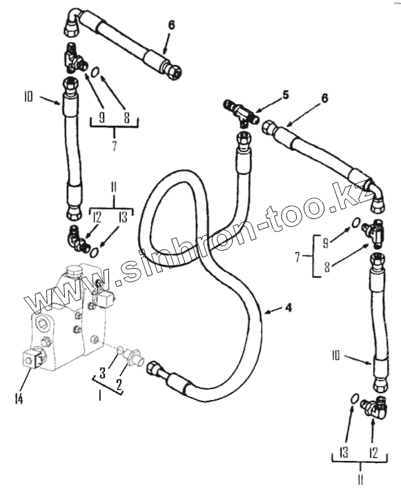 Погрузочное оборудование - трубопроводы 3-х золотникового распределителя