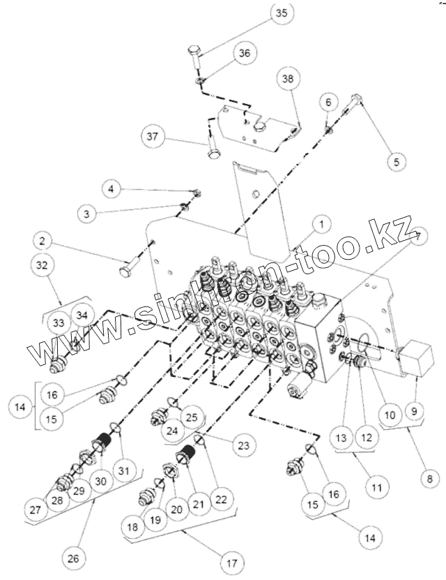 | 26 | 1Н0193 | Ограничитель клапана экскаваторного оборудования в сборе | |