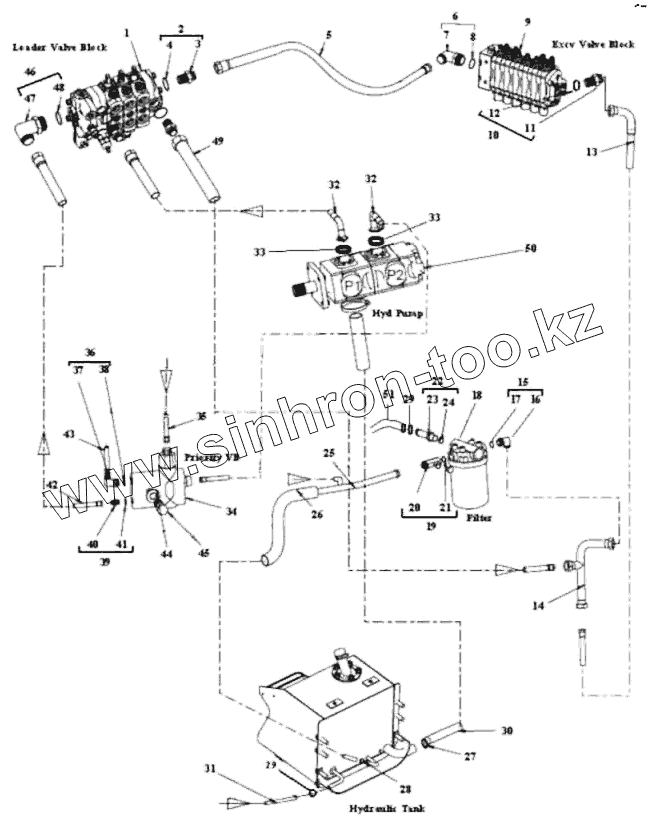 Каталог запасных частей к технике: RM-Terex TLB-815. Компоновка гидрооборудования