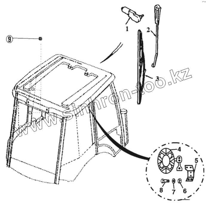 Каталог запасных частей к технике: RM-Terex TLB-815. Омыватель переднего стекла