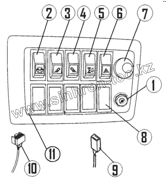 Каталог запасных частей к технике: RM-Terex TLB-815. Пульт боковой - Приборная панель, блок выключателей