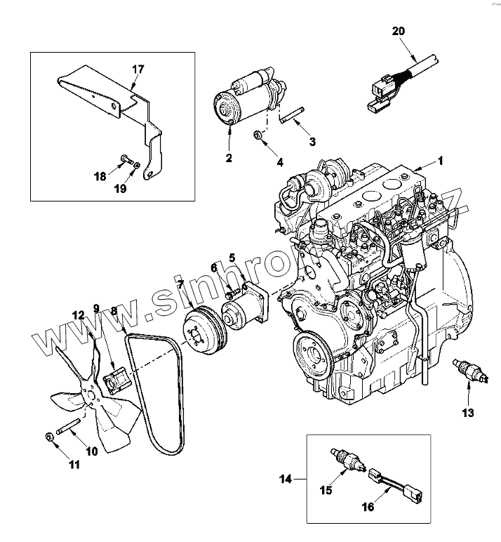 Каталог запасных частей к технике: RM-Terex TLB-825. Двигатель Rg38100 (Без кондиционера)
