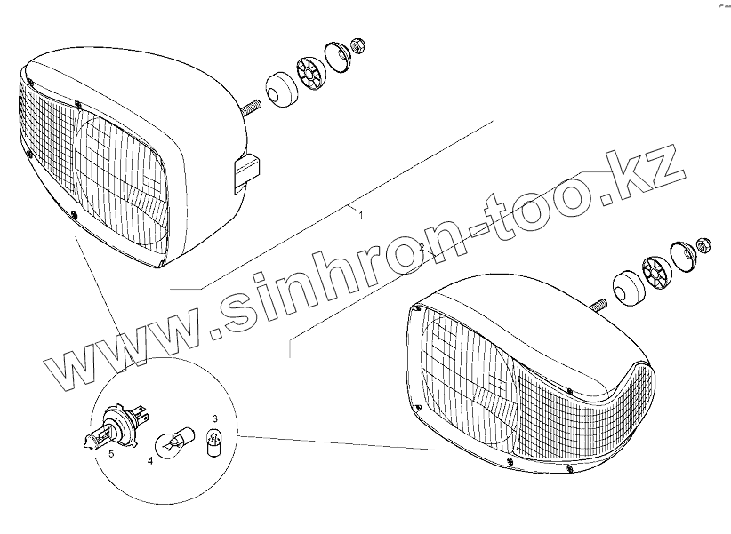 Каталог запасных частей к технике: RM-Terex TLB-825. Передние фары освещения
