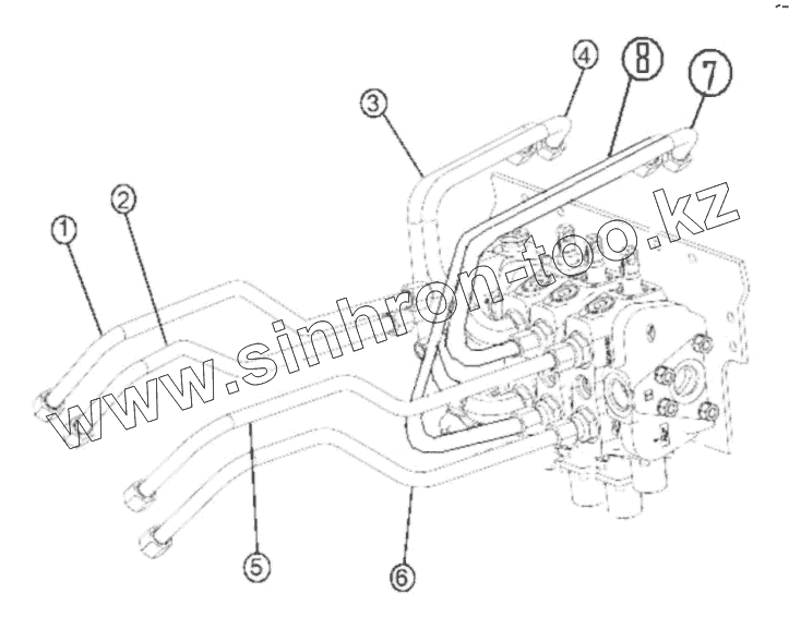 Каталог запасных частей к технике: RM-Terex TLB-825. Трубопроводы 3-х золотникового распределителя