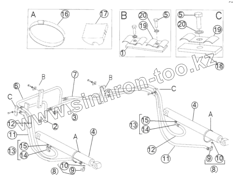 Каталог запасных частей к технике: RM-Terex TLB-825. Цилиндр подъема