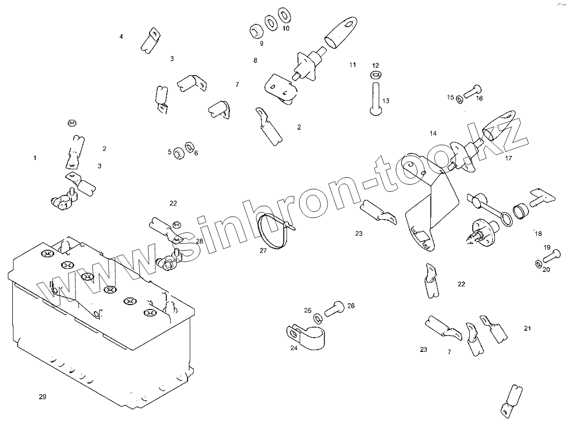 Каталог запасных частей к технике: RM-Terex TLB-840. Аккумулятор - Одинарный