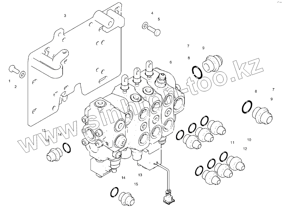 Каталог запасных частей к технике: RM-Terex TLB-840. Клапан погрузчика - Механическое управление