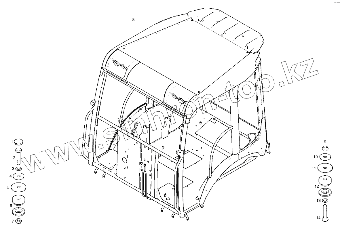 Каталог запасных частей к технике: RM-Terex TLB-840. Навес и монтажные крепления