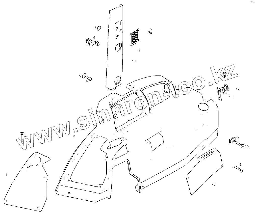 Каталог запасных частей к технике: RM-Terex TLB-840. Отделка кабины - Боковая консоль - Правая