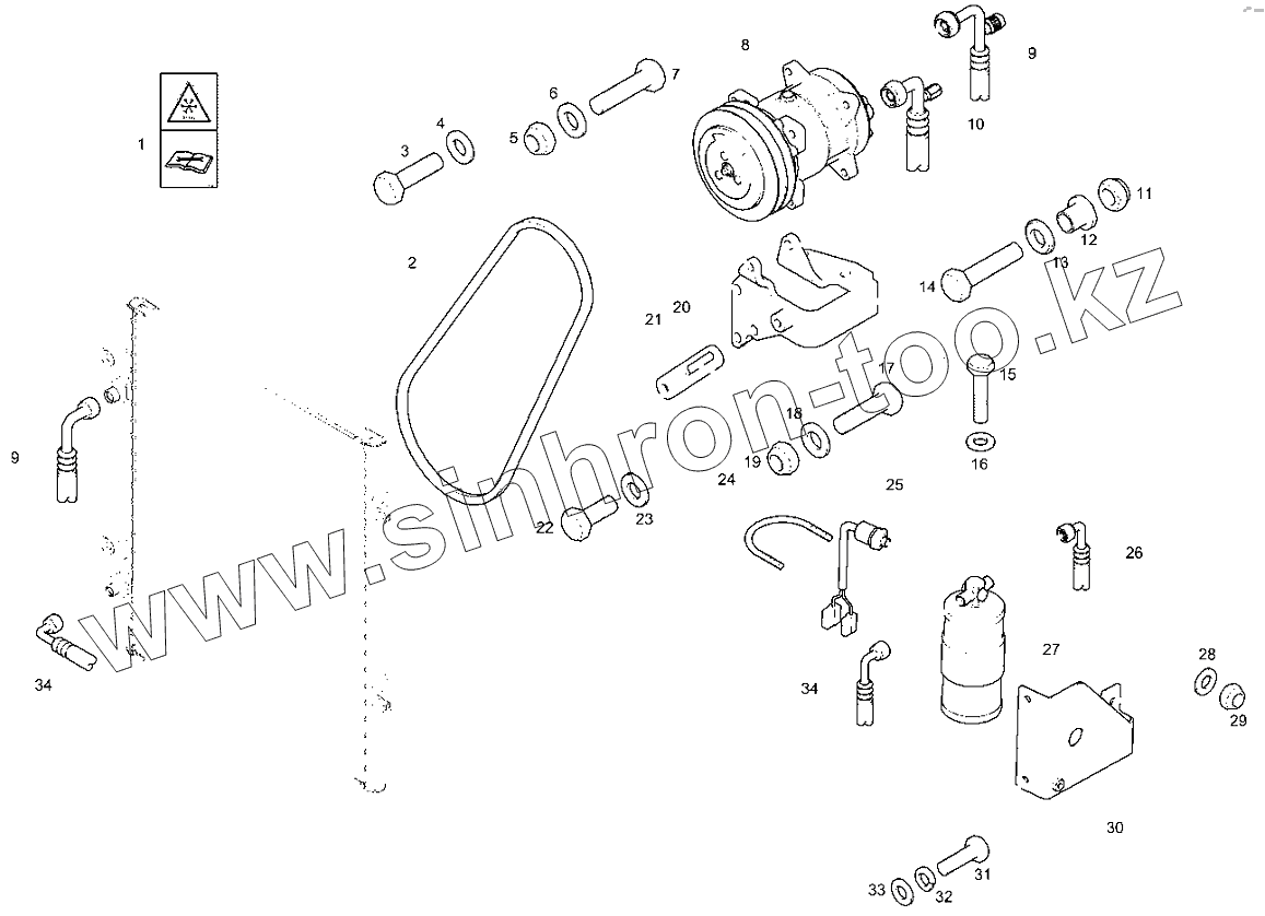Каталог запасных частей к технике: RM-Terex TLB-840. Отопитель - Кабина - с кондиционером - Компрессор