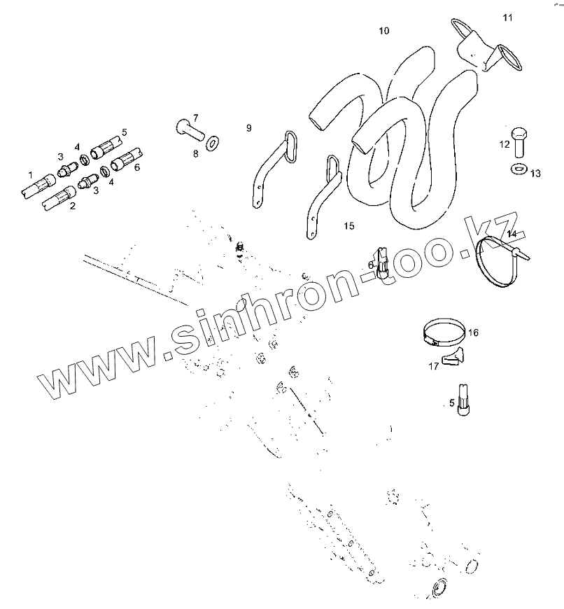 Каталог запасных частей к технике: RM-Terex TLB-840. Патрубки цилиндра ковша
