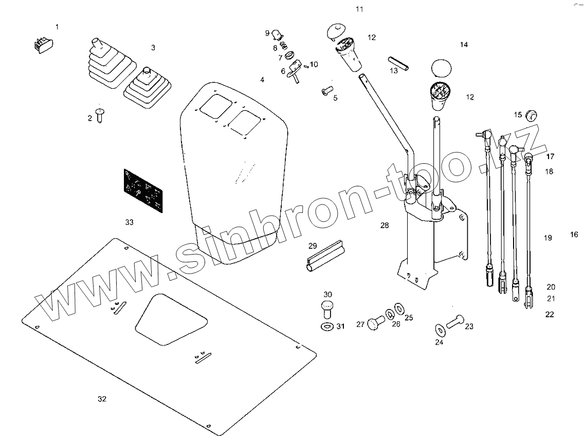 Каталог запасных частей к технике: RM-Terex TLB-840. Управление рукоятью - шаблон Х