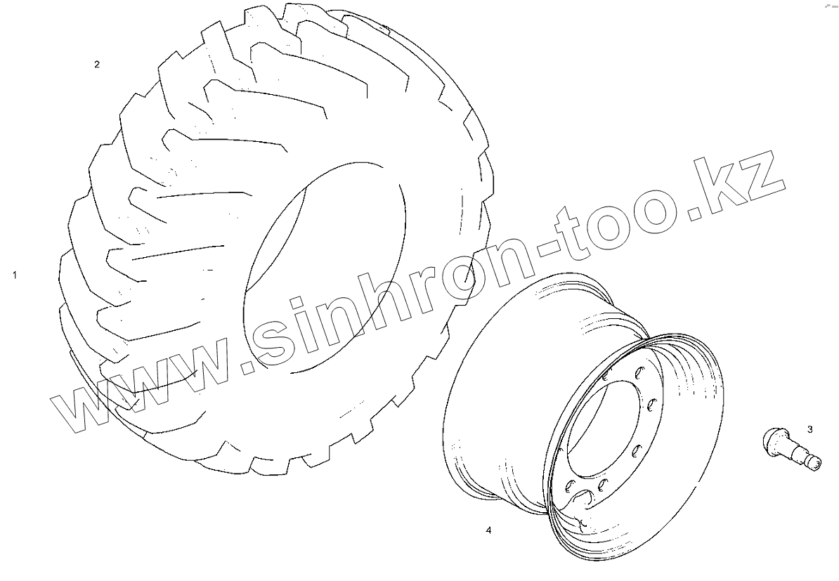 Каталог запасных частей к технике: RM-Terex TLB-840. Запасное колесо - Переднее - Белый цвет