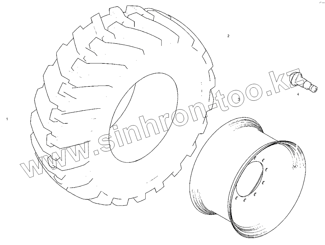 Каталог запасных частей к технике: RM-Terex TLB-840. Запасное колесо - Заднее - Желтый цвет